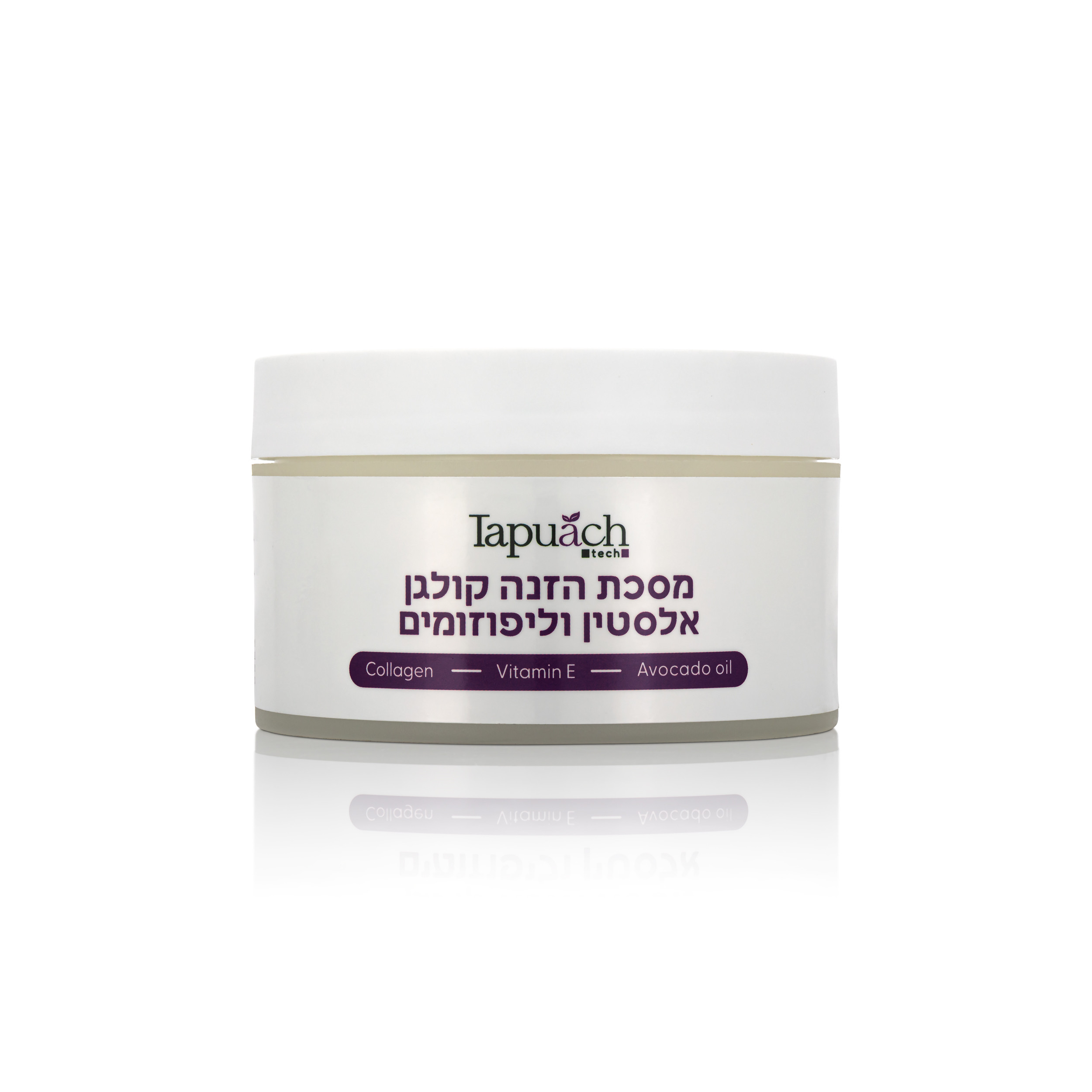 מסכת הזנה קולגן אלסטין וליפוזומים מסכת הפנים של קולגן, אלסטין וליפוזום של תפוח מועשרת בחומצות שומן חיוניות כדי לספק לחות והזנה מקסימלית. הוא מכיל קולגן שעבר הידרוליזה, העשיר בחומצות אמינו הנחוצות לתיקון העור, ואלסטין שעבר הידרוליזה כדי לשפר את גמיות העור. מרכיבים נוספים כוללים רטינול, שמן שקדים,שמן בוראגואופיסינליס, שמן אבקדו,סקוואלן, אלרטואין וטוקופריל אצטט, אשר יחד מסייעים בחידוש העור, שמירה על לחות והגנה מפני רעלים סביבתיים.