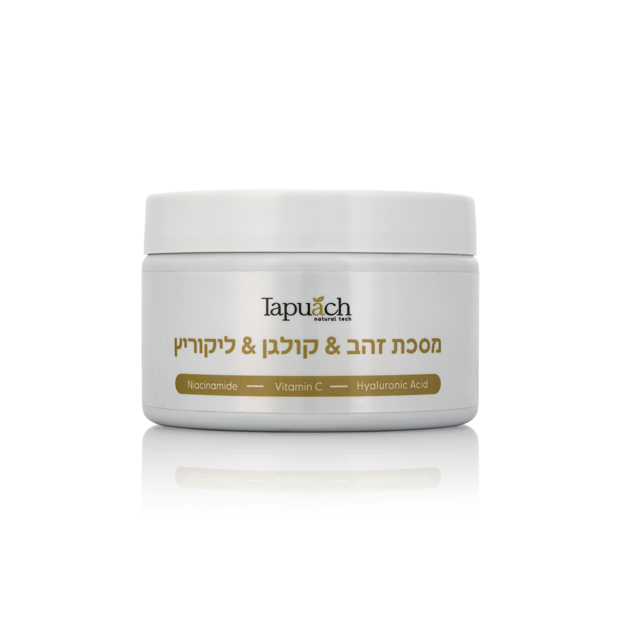 מסכת זהב & קולגן & ליקוריץ מסכת יופי בפורמולה ייחיודית לטיפול אנטי-אייג'ינג, הגברת לחות ומיצוק לשמירה על מראה עור צעיר, מוצק וזוהר . מרככת את העור ומזינה אותו בוויטמינים ומינרלים, מאירה את גוון העור ומגנה על סיבי הקולגן והאלסטין, מתאימה לכל סוגי העור.
