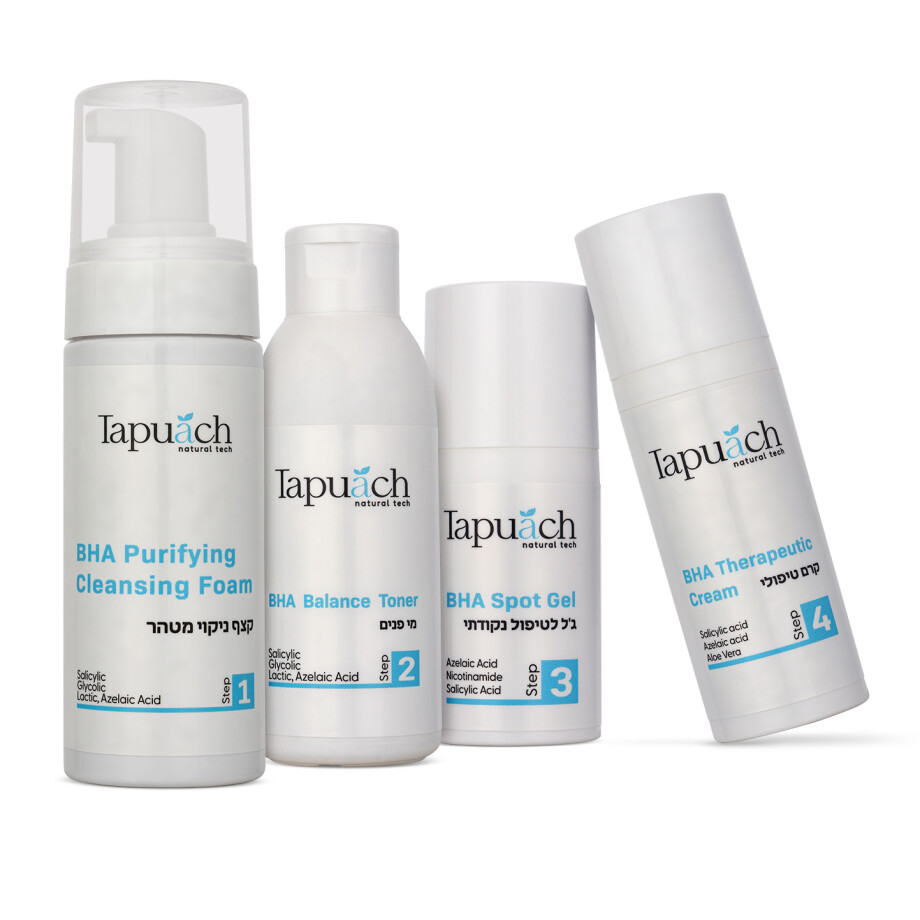 מי פנים BHA – תמיסה טיפולית : קומפלקס חומצות המסייעות בניקוי העור והסרת הליפידים ושומנים האחראיים לחסימת נקבוביות ויצירת פצעונים. הרגעת עור עדין ומגורה, הפחתת אדמומיות, והכנת העור לקליטת חומרים פעילים.