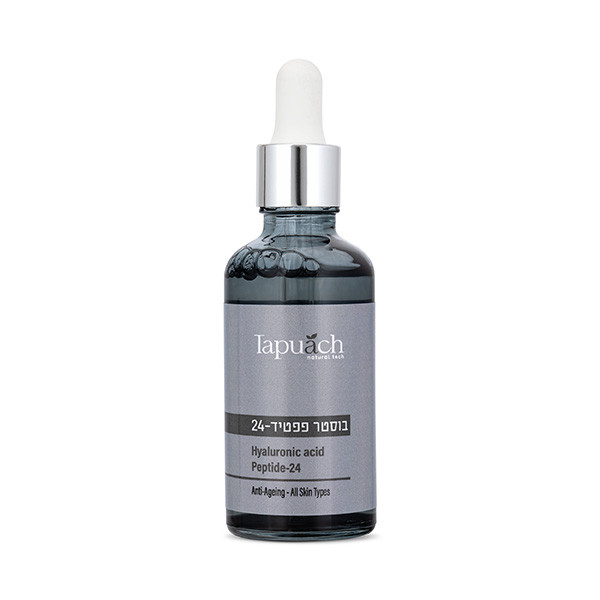 סרום בוסטר פפטיד 24: בעל תכונות אנטי אייג'ינג. סרום קל משקל נטול שמן. הפפטידים בנויים משרשרת חומצות אמינו המגבירים ייצור קולגן, מסייעים במיצוק העור, גמישות ומפחיתים מראה של קווים עדינים וקמטים . הבוסטר מכיל " חומצה היאלורונית" בעלת 3 מולקולות רב עוצמה היכולות להחזיק עד פי 1000 ממשקלן במים מה שהופך אותן ליעילות בהענקת לחות, מיום וטונוס לאורך זמן . הסרום מכיל: תמצית אלוורה מרוכזת המעניקה לחות גבוהה מבלי להשאיר את העור שמנוני. מתאים לכל סוגי העור.
