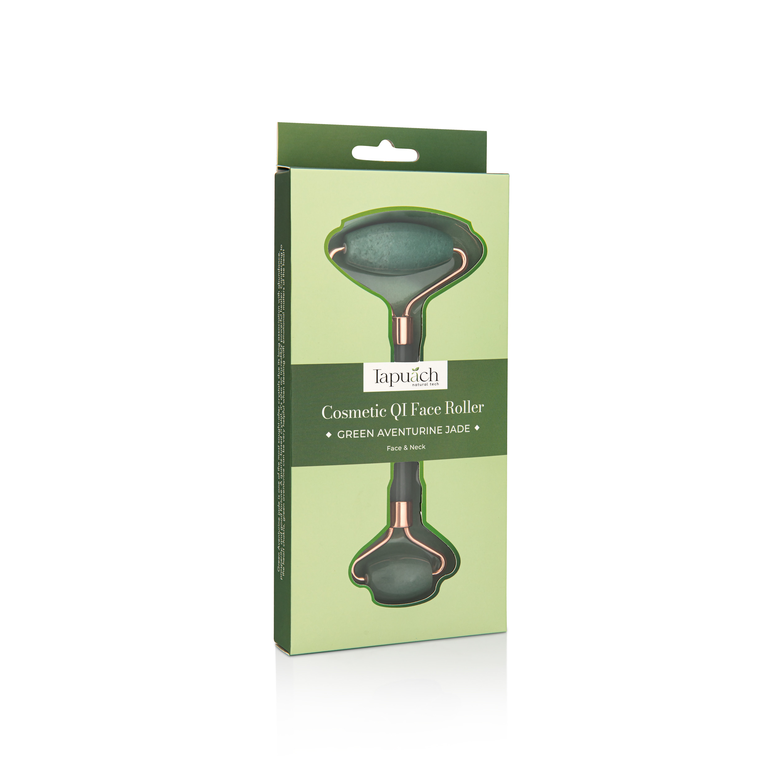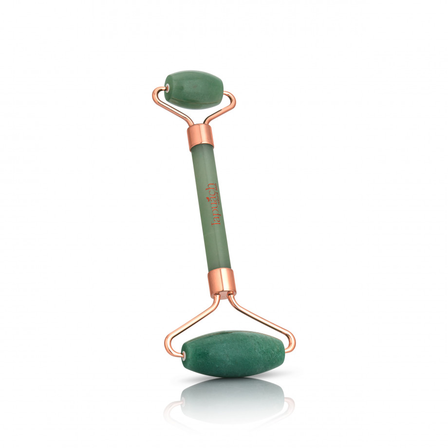 רולר פנים ג'אד ירוק דו צדדי רולר ג'אד לפנים של תפוח- הוא כלי לעיסוי פנים העשוי מאבן ירקן הידוע במרקם חלק ובתכונות הקירור שלו. הוא משמש לשיפור שגרת טיפוח העור על ידי המרצת זרימת הדם, הפחתת נפיחות וישפור גמישות העור. לרולר יש שני קצוות עם אבנים בגדלים שונים לאזורי פנים שונים, מומלץ לגלגל את רולר הירקן כלפי חוץ כדי להשיג אפקט עיסוי מרגיע וממריץ.