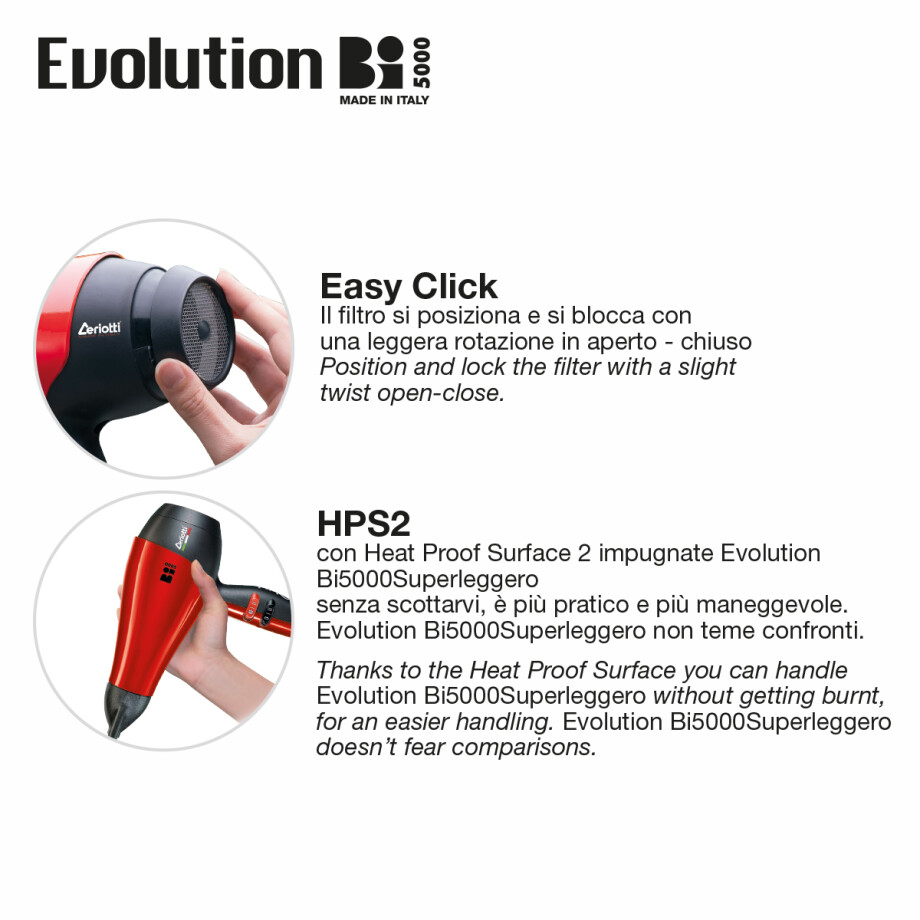 מכשיר עיצוב שיער מקצועי ואיכותי המיוצר באיטליה, המיועד לשימוש במספרות או לשימוש ביתי ברמה גבוהה. הוא ידוע בעוצמתו הגבוהה ובמשקלו הקל יחסית.